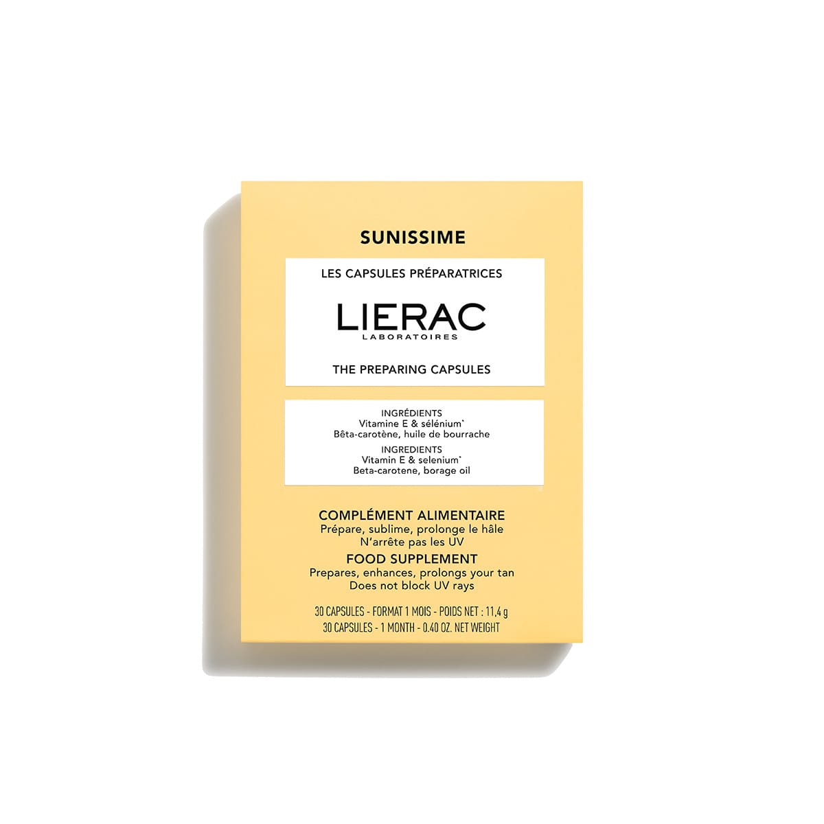 Thanks to Vitamin E and Selenium, they provide antioxidant cellular protection. At the heart of its formula, the right amount of Beta-carotene, combined with regenerating Borage Oil, enhance the skin and prolong your holiday tan.